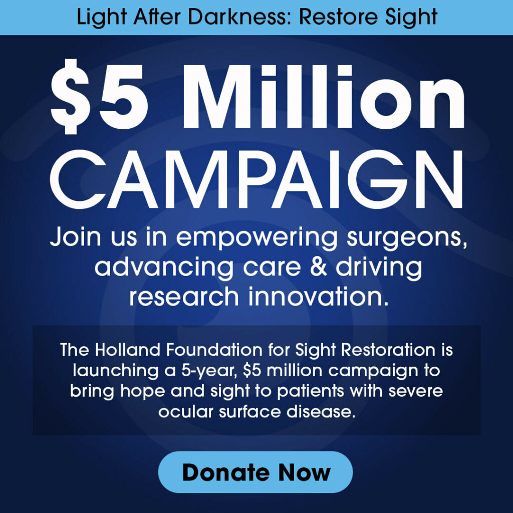 To support our mission, donations are essential to expand the education of surgeons in diagnosing and treating severe ocular surface disease and provide long-term management for patients with complex ocular surface disease.